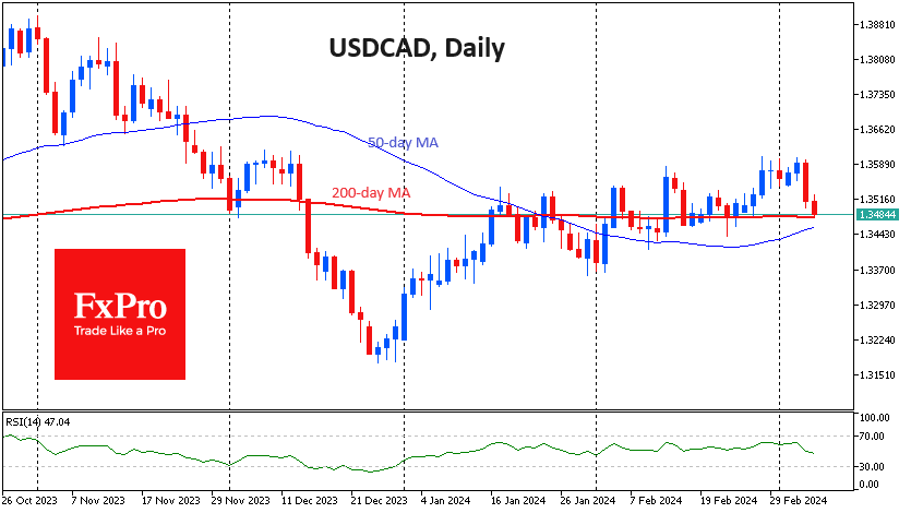 美元/加元周四下跌了0.1%,与美元(UD)的普遍疲软一致,因为交易商正在消化美联储(FD)主席鲍威尔周三在国会作证的第一天向美国国会议员发表的评论。 在鲍威尔确认美联储计划在通胀率接近目标时降息后,美元兑加元周三大幅抛售。由于美联储的立场与加拿大央行(OC)在上次会议上采取的鹰派立场形成鲜明对比,美