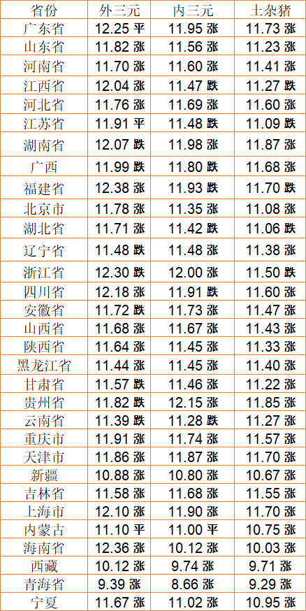 猪肉价格今日价(2022年9月14日) 备注:以上猪肉价格仅供参考,请以官方价格为准。(亚汇网编辑:陌尘)