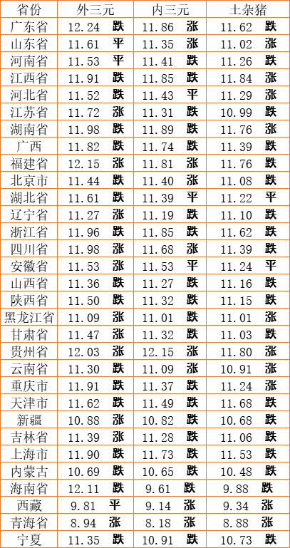 猪肉价格今日价(2022年9月9日) 备注:以上猪肉价格仅供参考,请以官方价格为准。(亚汇网编辑:陌尘)