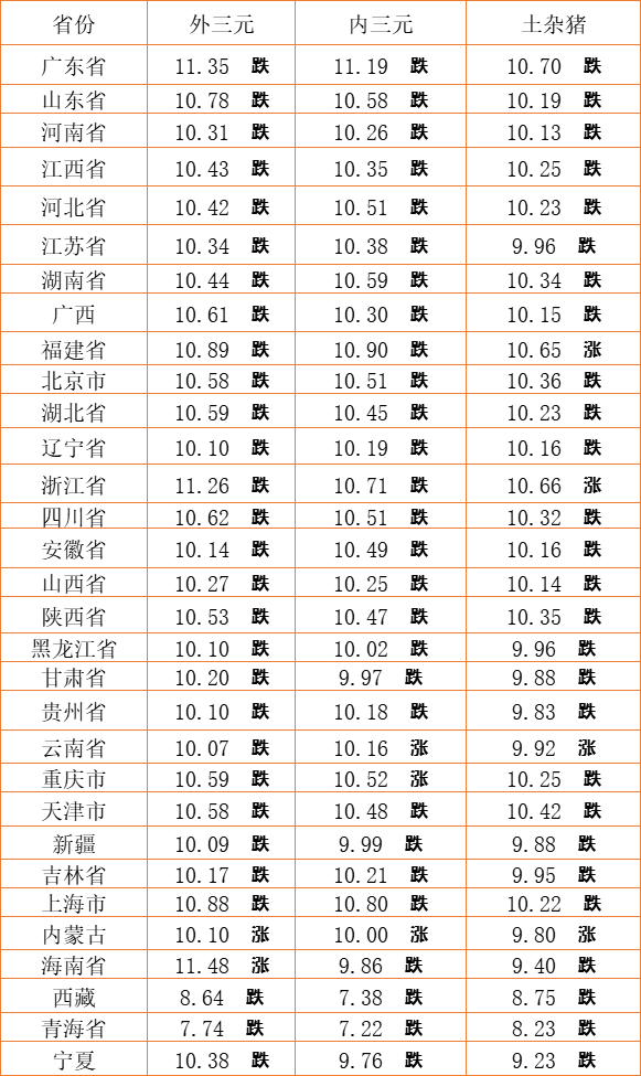 猪肉价格今日价(2022年7月29日) 备注:以上猪肉价格仅供参考,请以官方价格为准。(亚汇网编辑:陌尘)