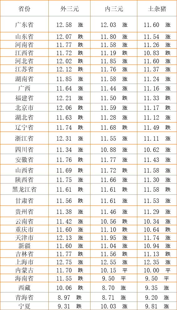 猪肉价格今日价(2022年7月11日) 备注:以上猪肉价格仅供参考,请以官方价格为准。(亚汇网编辑:陌尘)
