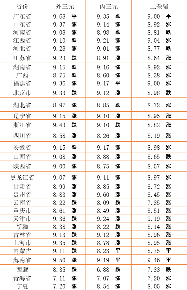 猪肉价格今日价(2022年6月27日) 备注:以上猪肉价格仅供参考,请以官方价格为准。