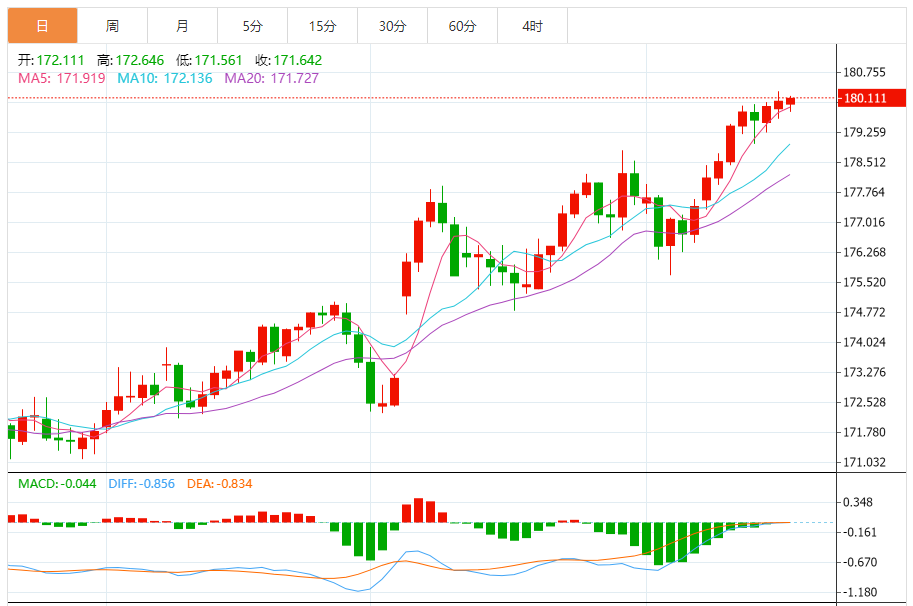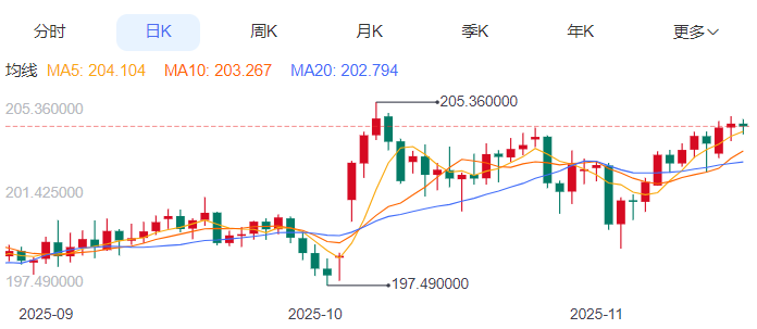 周三,英镑/日元下跌0.06%至204.31附近。 英镑方面,英国央行首席经济学家Huwill表示,英国物价压力没有像整体通胀预期所显示的那么强,但他也坚持认为,决策者现在还不应该再次降息。在10月通胀数据发布的前一天,ill在发言时表示,一系列一次性因素对价格的影响可能是暂时的,但他重申担忧称,家庭