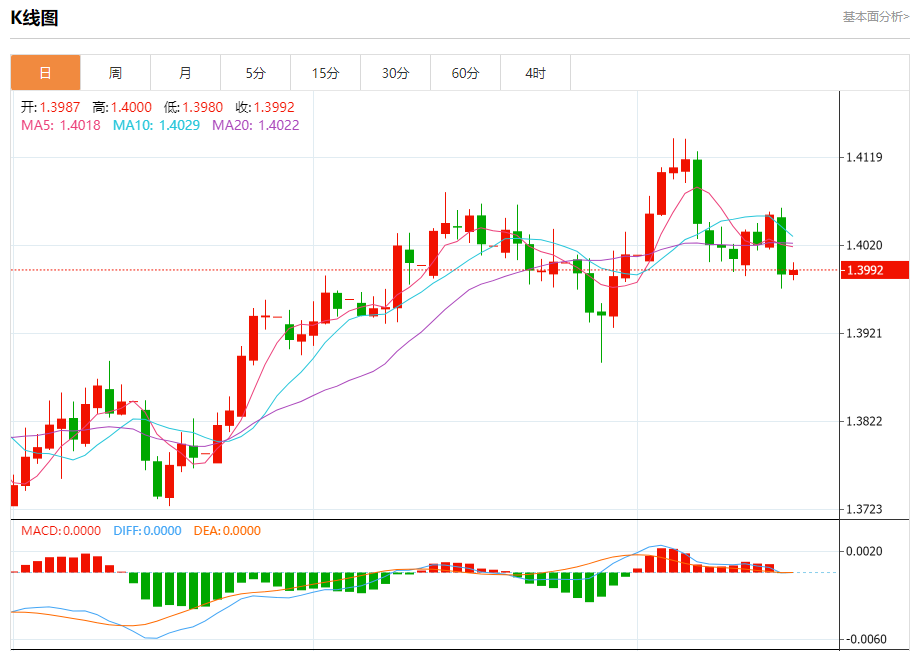 周三,美元/加元徘徊于1.3993下方,现交投于1.3992附近,涨幅0.03%。 市场基本面分析 加拿大10月通胀回落,为央行维持现有利率不变提供充分理由。 数据显示,加拿大10月通胀率降至2.2%,较9月的2.4%继续回落,主要受汽油价格下跌与食品通胀缓解推动。食品价格涨幅从4.0%收窄