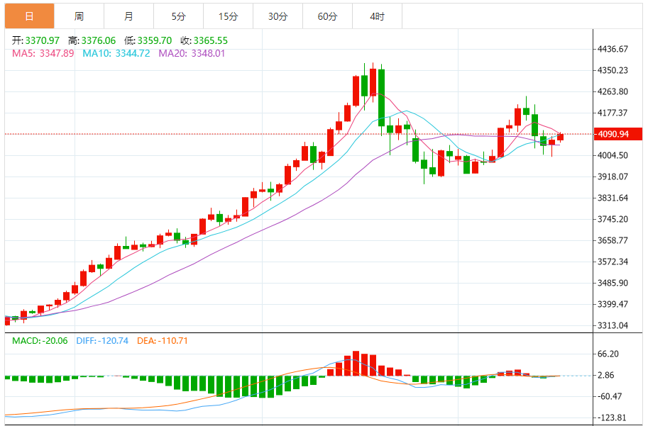 基本消息面 周三(11月19日)纽约尾盘,现货黄金涨0.28%,报4078.59美元/盎司,亚太盘初以来持续走高,北京时间23:15刷新日高至4132.86美元,之后快速回吐涨幅,并逼近10:04刷新的日低4055.68美元。COX黄金期货涨0.36%,报4081.10美元/盎司,23:15也曾刷新日高至4134.30美元。 相关新
