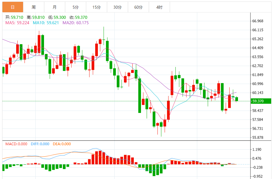 基本消息面 周二(11月18日),美原油价格交投于59.640美元/桶附近,跌幅为0.37%。 相关新闻消息 从近期行情与技术面来看,油价呈现“震荡偏弱、反弹乏力”的特征。此前11月14日,受地缘风险升温推动,WTI原油和布伦特原油曾分别大涨2.39%和2.19%,但涨势未能持续。17日盘中