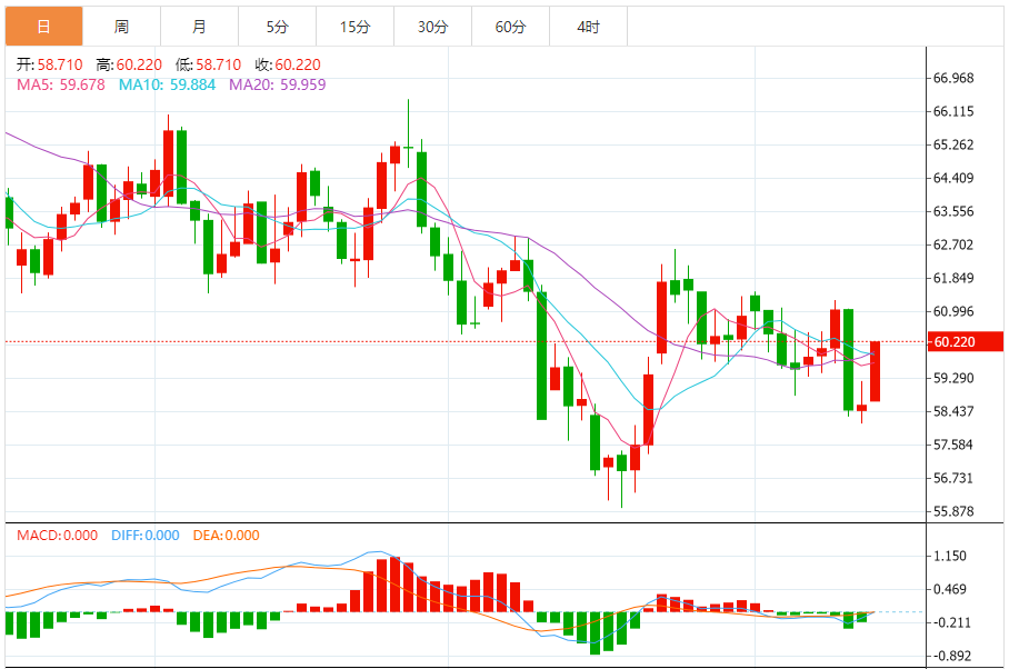 周五(11月14日),美原油价格交投于59.700美元/桶附近,涨幅为1.74%。 原油价格在最后一个交易日上涨,受到关键支撑58.75美元的稳定支撑,除了从超卖水平反弹后相对强度指标出现积极信号外,这种势头的改善恢复了对价格行动的信心,并支持价格试图突破近期的弱势。 价格成功超越了A50的