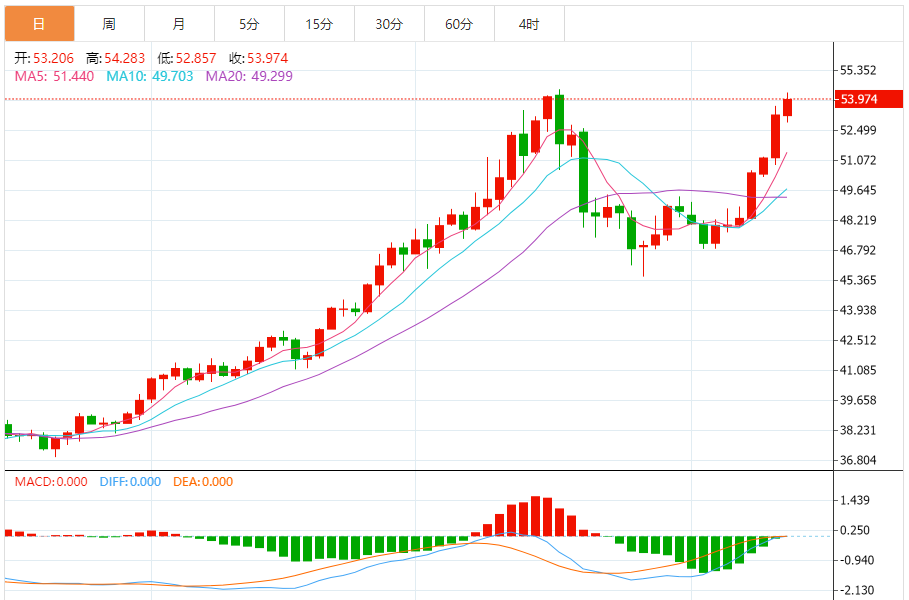 周四(11月13日),现货白银目前位于53.988美元/盎司附近,涨幅为1.42%。 在突破52.60美元阻力后,白银价格在最后一个交易日大幅上涨,该阻力是我们之前分析的预期目标,尽管在达到超买水平后,相对强度指标上出现了负面信号,表明看涨势头的数量,在短期内主要看涨趋势占主导地位,并且沿着该目标的支