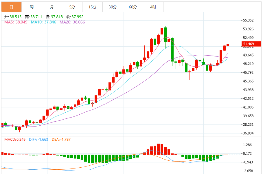 周三(11月12日),现货白银目前位于51.467美元/盎司附近,涨幅为0.54%。 在达到51.25美元的阻力(这是我们之前分析中的潜在目标)后,白银价格在最后一个盘中交易中走高,试图获得可能有助于突破这一阻力的看涨势头,因为短期内小牛市占主导地位,并且沿着该轨道的支撑趋势线交易,此外,在卸载其超买
