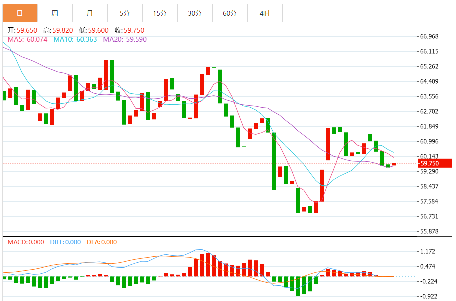 基本消息面 周五(11月7日),美国西德克萨斯中质原油(WTI)小幅回弹至于59.78美元/桶附近,此前已连续四个交易日走低。受地缘风险推动,油价收复部分失地。然而,在市场对供应过剩的担忧日益加剧之际,油价潜在上行空间可能受限。美原油连续上涨约0.6%至59.78美元/桶;布伦特原油连续上涨约0.4%至63.7