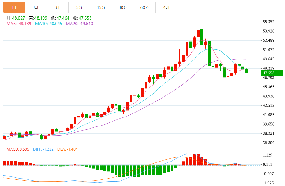 基本消息面 受美元走强和供应过剩预期拖累,油价下跌,结束此前连续四个交易日的涨势。WTI下跌0.8%,收于每桶61美元下方。 相关新闻消息 对估值高企的担忧阻碍了全球股市的涨势,同时美元升至逾五个月来最高水平,令原油及其他以美元计价的大宗商品承压。 trat