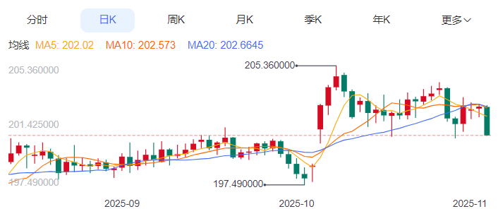 周二,英镑/日元下跌0.92%至200.76附近。 英镑方面,相对于上周议息的美联储和欧洲央行,本周四(11月6日)的英国央行利率会议显然悬念倍增。大部分分析师认为,英国央行将在本周暂停降息,结束其一年多来保持的每季度一次的政策宽松步伐。但也有包括巴克莱、高盛在内的少部分机构预测,英国央行有可能