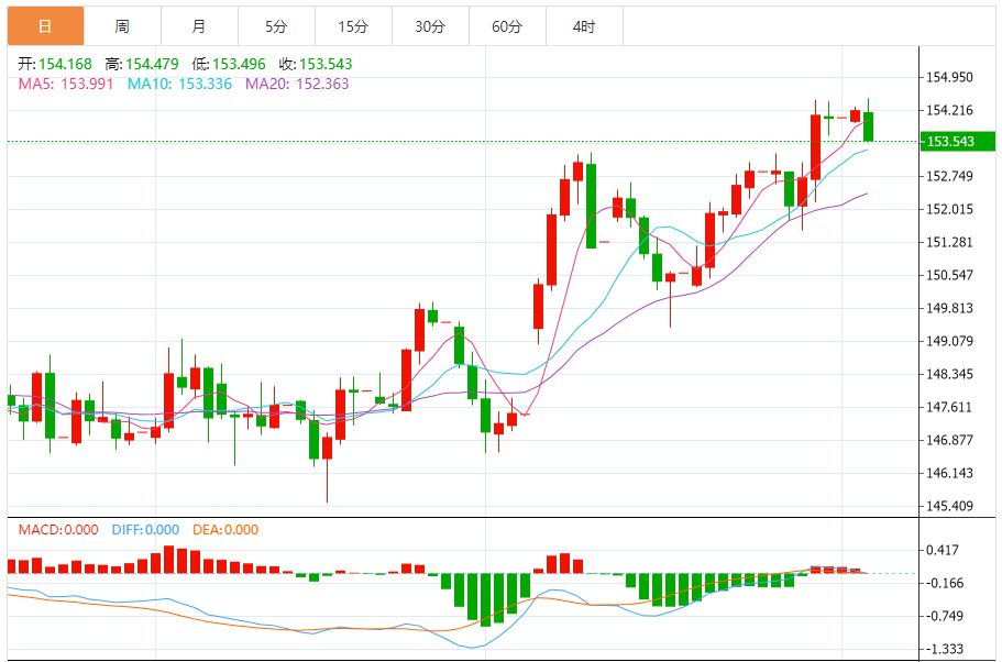 周二(11月4日),美元/日元下跌153.571,暂报153.559,跌幅0.42%。 市场基本面分析 10月30日,日本央行结束为期两天的货币政策会议,决定将基准利率维持在约0.5%的水平不变。这是日本央行自今年1月上调利率以来,连续第六次维持利率不变。会议结果公布后,市场焦点迅速转向日美利率差,日