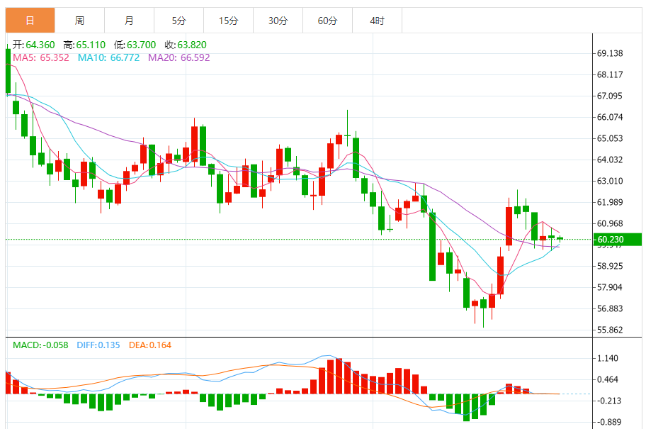 周五(10月31日),美原油价格交投于60.270美元/桶附近,跌幅为0.50%。 原油价格在最后一个交易日小幅下跌,继续试图寻找看涨动力以恢复其看涨轨道,价格在A50上方保持稳定,形成关键的动态支撑,帮助其在当前下跌的情况下保持看涨走势。 看涨趋势仍然是短期的主导,其交易与看涨趋势线