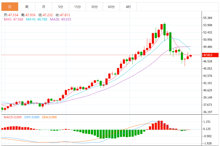 周四(10月30日),现货白银目前位于47.809美元/盎司附近,涨幅为0.57%。 由于当前在47.80美元的阻力位保持稳定,银价在最后一交易日的日内交易中下跌,在短期内看,受空头回调趋势支配,且由于其交易价格低于A50,负面压力持续,这减少了近期价格回升的可能性,尤其是在相对强弱指标上形成负背离,在