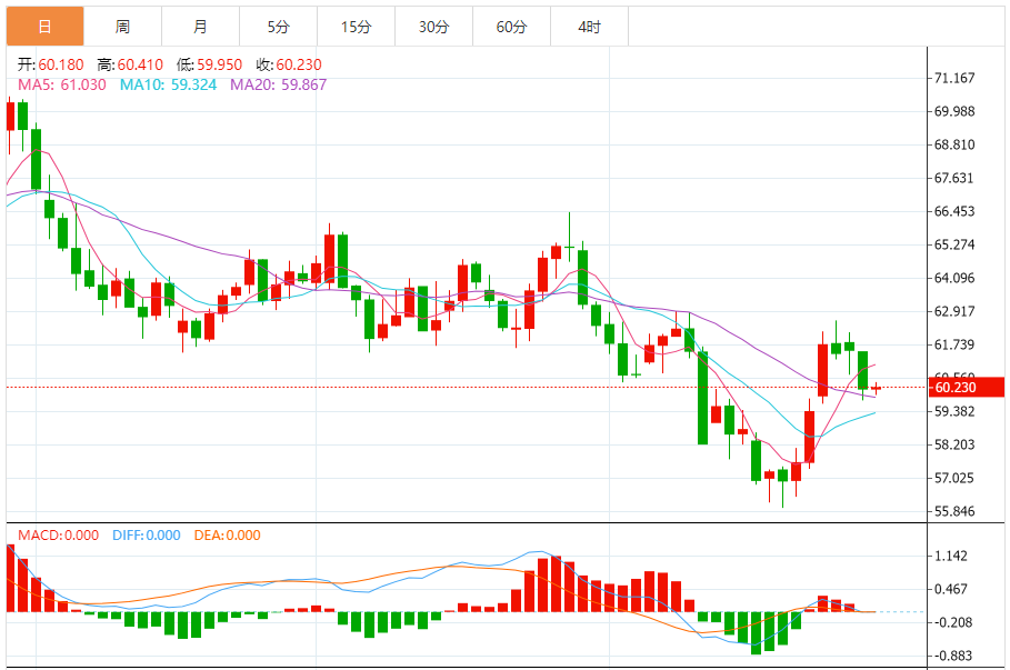 基本消息面 周三(10月29日),美原油价格交投于60.220美元/桶附近,涨幅为0.12%。 据市场调查显示,周二国际油价延续此前两日跌势,因投资者在权衡OC+增产预期与贸易谈判前景时保持谨慎。亚盘时段,布伦特原油期货下跌0.04美元至每桶65.58美元,美国WTI原油下跌0.09美元至61.22美元。O