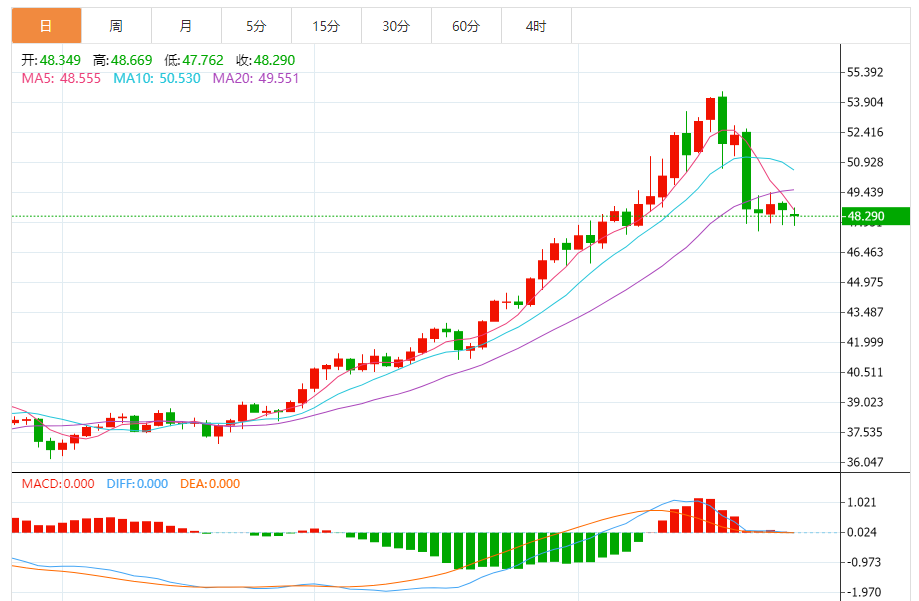 周一(10月27日),现货白银目前位于48.292美元/盎司附近,跌幅为0.61%。 在其最近一次盘中交易中,(白银)价格下跌,准备突破47.80美元的关键支撑位,原因是其价格持续低于A50所带来的负面压力,在急跌修正浪的主导下,同时存在支撑该走势的趋势线。此外,在排解了超卖状态后,相对强弱指标上出现了