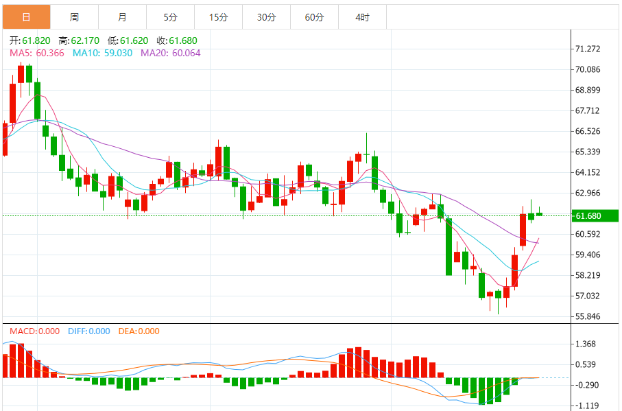 一、国际油价早盘反弹,周度累涨超7% 10月27日亚洲时段,国际油价延续反弹态势,截至上午8时27分,WTI原油期货涨幅扩大至1%,报62.13美元/桶;布伦特原油涨0.94%,报65.812美元/桶。这一涨势使油价实现周度显著回升,上周WTI原油全周累计上涨7.61%,布伦特原油累计涨7.74%,结束此前连续三个月的下跌趋