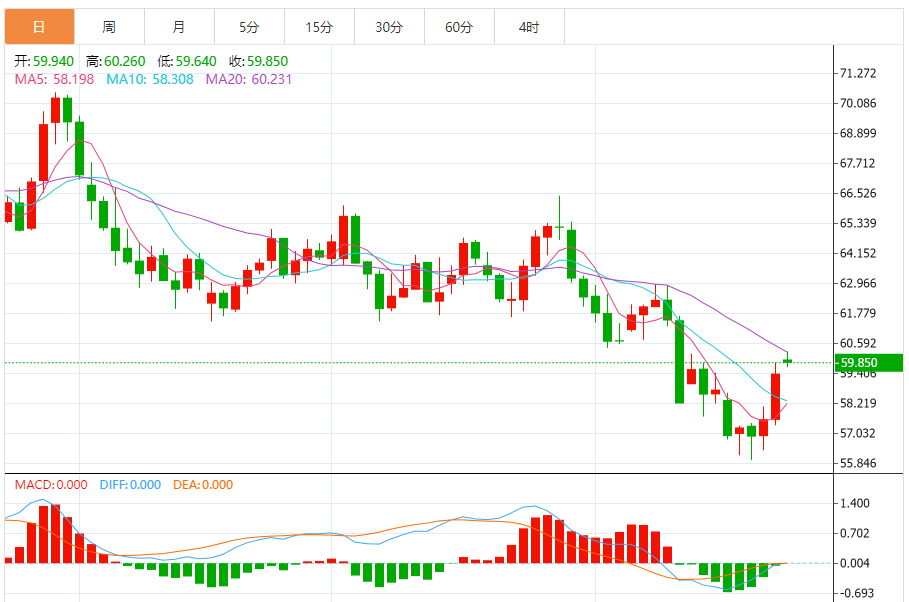 基本消息面 周四(10月23日),美原油价格交投于59.800美元/桶附近,涨幅为2.22%。 当前市场焦点在于贸易担忧情绪有所缓和,加上库存变化改善,使油价短线走强。投资者静待IA库存数据,希望获得更多指引。 此前,美国方面释放出缓和信号,令避险情绪下降。美国总统特朗普近