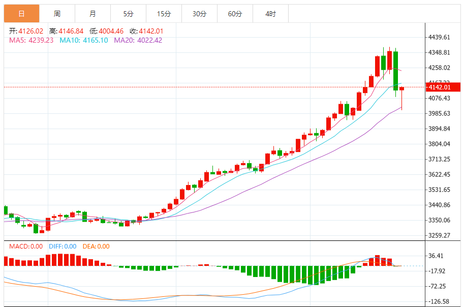 黄金技术前景:内外盘分化加剧,短期反弹难改长期压力 (一)国际黄金(伦敦金现):V型反弹但趋势隐患未消 日线级别:探底反弹验证支撑 日线图显示,伦敦金现早盘一度暴跌至4003.43美元(近一个月低点),随后快速反弹收复4100美元关口,形成“长下影阳线”,验证4000美元整