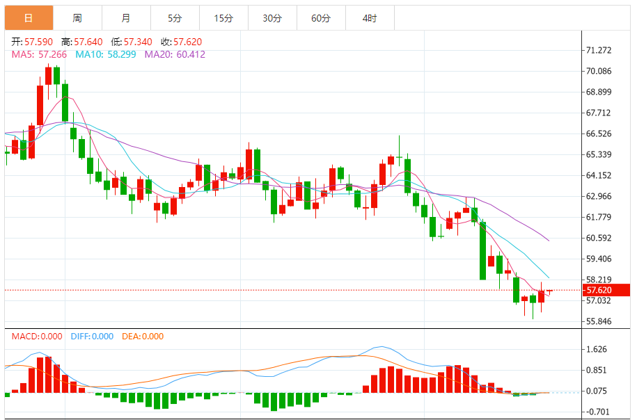 基本消息面 WTI原油在周三维持在57.55美元附近震荡反弹。当前市场焦点在于贸易担忧情绪有所缓和,加上库存变化改善,使油价短线走强。 相关新闻消息 投资者静待IA库存数据,希望获得更多指引。此前,美国方面释放出缓和信号,令避险情绪下降。 美国总统特朗普