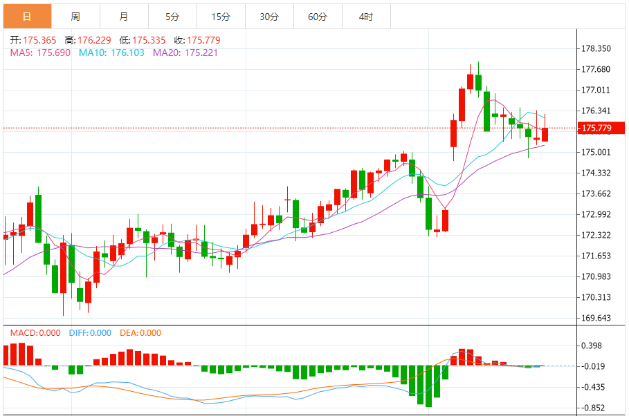 周二,欧元/日元上涨0.18%至175.803附近。 欧元方面,当地时间10月20日,欧洲央行管理委员会成员、德国央行行长约阿希姆·纳格尔(Joachiagl)表示,欧洲央行可维持利率不变,因为其抑制通胀的使命已基本完成。“通胀接近我们的目标,”纳格尔表示。“我们处于正轨。”他在谈及借贷成本时指出,“我
