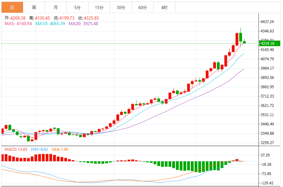 基本消息面 周一(北京时间10月20日),现货黄金交投于4250美元/盎司附近,金价上周五在创历史高位4379.38美元/盎司后回落近2%,受美元走强和美国总统特朗普关税言论打压,特朗普的关税语气有所缓和;美原油交投于57.17美元/桶附近,美油上周五触及5月初以来的低点至56.15美元/桶,国际能源署(IA)预