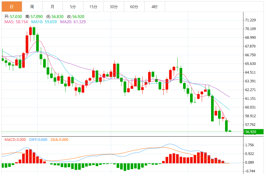 一、价格动态:国际油价续创五个半月新低,国内调价跌幅逼近年内峰值 10月17日原油市场延续弱势格局,国际油价早盘小幅下探后窄幅震荡。截至当日凌晨,WTI原油期货报57.62美元/桶,较前一日下跌0.22美元,跌幅0.45%;布伦特原油期货报62.26美元/桶,下跌0.14美元,跌幅0.22%,两者均创下近五个半月以来
