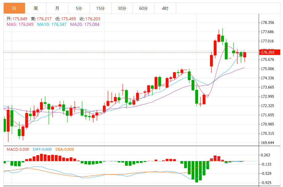 周四,欧元/日元上涨0.16%至176.226附近。 欧元方面,欧洲央行管理委员会成员Joachiagl表示,目前没有理由改变利率,并警告称通胀的一些组成部分仍需持续警惕。这位德国央行行长在接受采访时表示,现在讨论未来几个月借贷成本将如何变化还为时过早,但尽管服务通胀“具有粘性”,但消费者价格的涨势