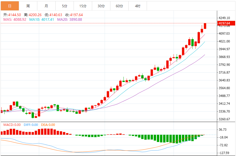 黄金:新高后回调蓄力,长期趋势未改 (一)关键技术指标拆解 均线系统:伦敦金现呈现完美多头排列,5日均线(4172美元)、10日均线(4135美元)、20日均线(4098美元)依次向上发散,价格始终运行于5日均线上方,且5日均线与20日均线乖离率达2.4%,显示趋势动能充沛。沪金期货更甚,5日均