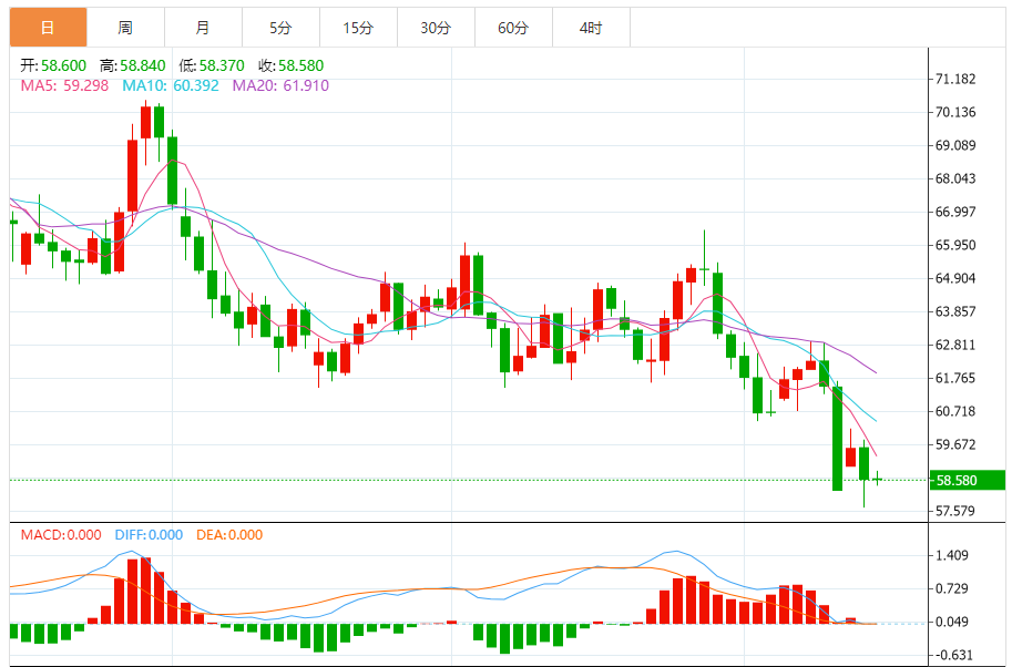 基本消息面 周三,国际油价延续前一交易日的跌势。布伦特原油期货下跌0.19%,报每桶62.27美元;美国WTI原油期货下跌0.17%,至每桶58.60美元。两项合约均创下自5个月以来的最低收盘价。 相关新闻消息 国际能源署(IA)于周二发布报告指出,全球原油市场在2026年可能出现多达