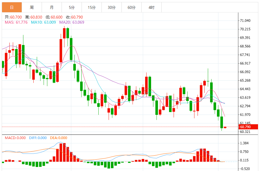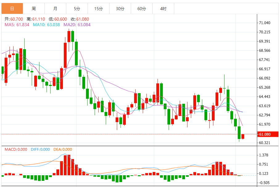 基本消息面 周五(10月3日)美国原油基准西德克萨斯中质原油(WTI)于60.70美元/桶附近窄幅震荡。由于市场担忧本周末OC+会议将导致原油供应过剩,油价持续承压于四个月低点(60.40美元)附近。布伦特原油连续交投于64.30美元/桶附近。 周四布伦特原油连续结算价下跌约1.9%,报每桶64.26