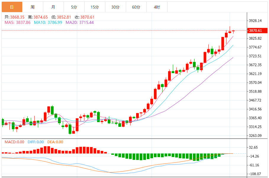 基本消息面 周三(10月1日)纽约尾盘,现货黄金涨0.12%,报3863.51美元/盎司。COX黄金期货涨0.46%,报3891.00美元/盎司,最近五天累涨3.26%。 相关新闻消息 美国制造业活动连续第七个月萎缩订单指标再次回落 美国9月制造业活动连续第七个月萎缩,订单量回落,