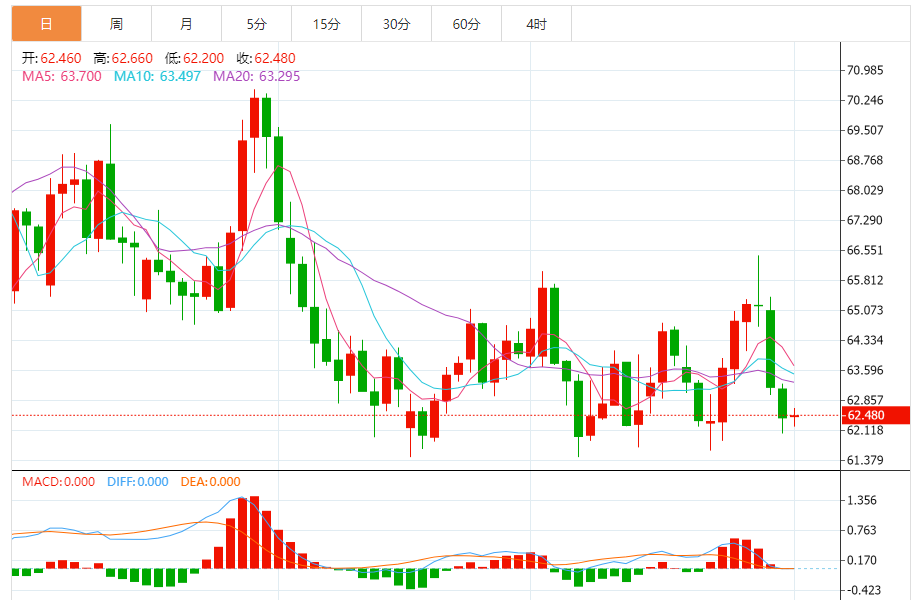 10月1日原油市场延续震荡回调态势,供应端增产预期与需求端疲软担忧形成尖锐对立,推动油价在关键支撑位附近反复博弈。截至纽约时段晚间21:37,WTI原油期货报62.10美元/桶,较前一交易日收盘价下跌0.27美元,跌幅0.43%;布伦特原油期货报65.77美元/桶,下跌0.28美元,跌幅0.42%。当前市场正处于"OC+增产信号"与"低