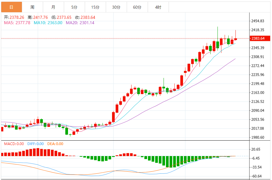 基本消息面 周五(4月19日),现货黄金交投在2382美元/盎司附近,已经自日内高点2417.92美元/盎司大幅回落逾35美元。尽管金价出现“高台跳水”,但只要金价守在2375.00美元/盎司上方,那么黄金前景仍然看涨。 相关新闻消息 分析师指出,伊朗方面的重要消息令市场避险情绪迅速