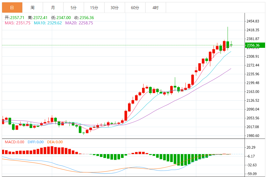 基本消息面 周一(4月15日),黄金市场迎来跳空高开后回落,最高触及2372.5美元/盎司,目前交投于2356.67美元/盎司。此次飙升源于伊朗向以色列领空发动300架无人机与导弹袭击,引发了市场避险需求的增加。然而,技术分析师克莱夫·莫德(Clivaud)发出警告,指出如果伊朗未有后续行动,黄金可能将迎