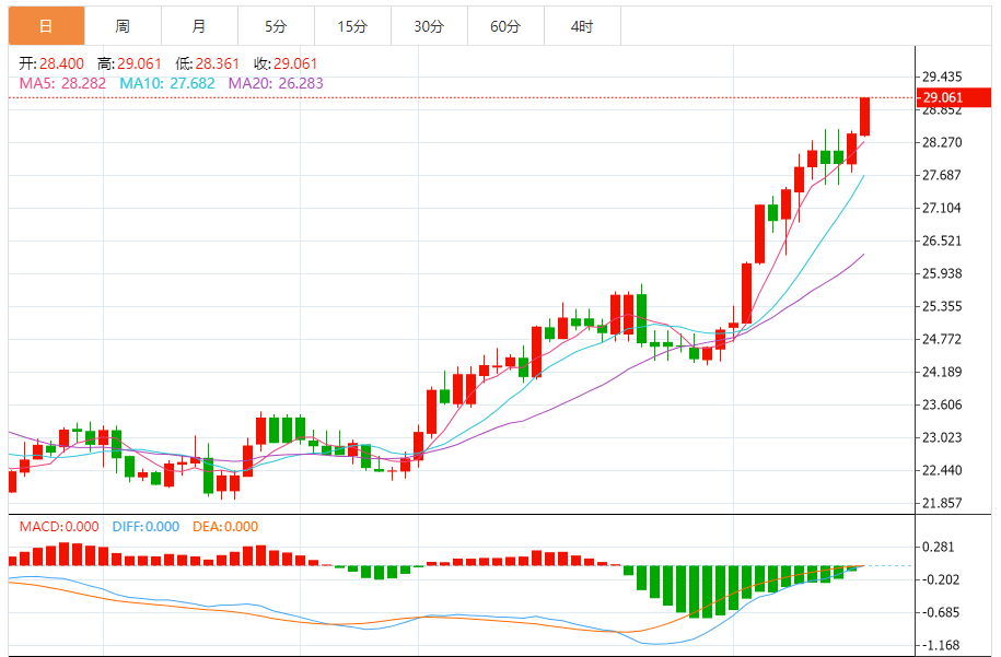 周五(4月12日),现货白银目前位于29.042美元/盎司,涨幅为2.18%。白银价格恢复看涨涨势,达到第一个等待的目标28.75美元,显示出进一步上涨超过这一水平,并确认为未来几个交易日的更多预期涨幅开辟了道路。 下一个目标位于29.40美元。 看涨通道继续组织建议的看涨波,受A50支撑。