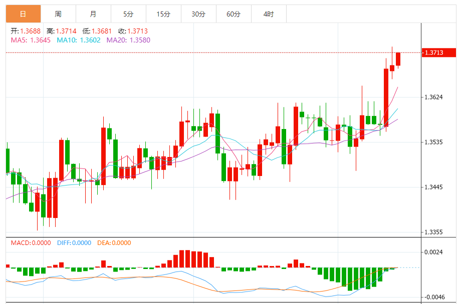 周五,美元/加元徘徊于1.3716下方,现交投于1.3714附近,涨幅0.19%。 市场基本面分析 4月11日,加拿大央行在周三的会议上宣布,将基准利率保持在5%的水平不变。该行行长麦克勒姆表达了一种乐观的态度,暗示在接下来的6月份利率决策会议上,加央行可能会采取降息措施。 麦克勒