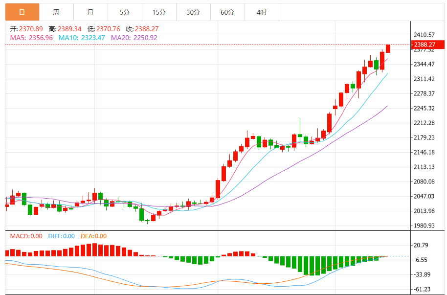 周五(4月12日),现货黄金短线突然快速上涨,金价在三分钟内飙升逾10美元,再创历史新高。 黄金市场基本面分析 周四,美国3月份生产者物价指数(I)涨幅低于预期,金价恢复涨势,目前黄金买家掌控局势。 现货黄金周四收盘暴涨38.55美元,涨幅1.65%,收报2371.58美元/盎司