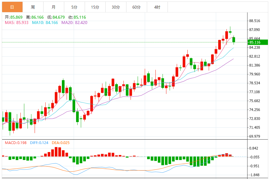 基本消息面 周一(4月8日),美原油价格交投于85.116美元/桶附近,跌幅为1.79%。上个月,来自美洲主要原油供应国墨西哥的石油出货量下滑35%,降至2019年以来的最低水平,原因是墨西哥总统安德烈斯·曼努埃尔·洛佩斯·奥夫拉多尔(AdraulLozOrador)试图兑现承诺,让该国摆脱昂贵的燃料进口。