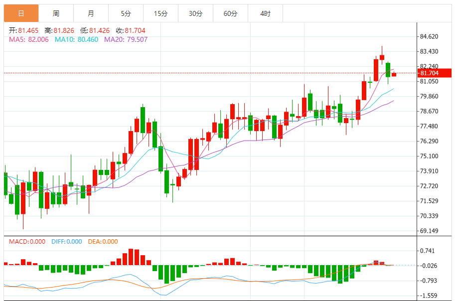 基本消息面 北京时间22日凌晨,美国WTI原油周四收跌。显示美国汽油需求疲软的数据以及关于联合国呼吁加沙停火的决议草案的报道,均令油价承压。 纽约商品交易所5月交割的西德州中质原油(WTI)期货价格收跌0.20美元,跌幅超过0.24%,收于每桶81.07美元。4月汽油期货收报2.7271美元,YX4