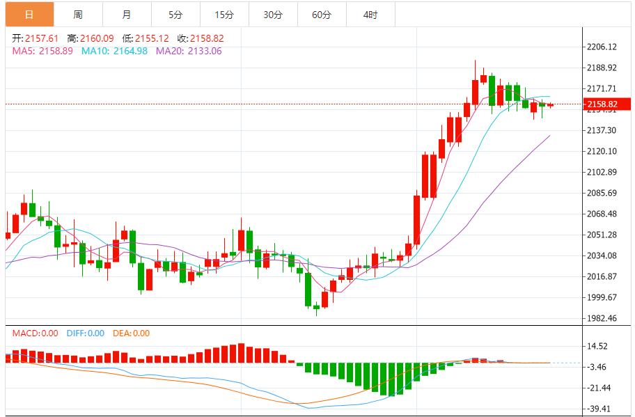 基本消息面 周三(3月20日),现货黄金基本持稳,金价目前位于2158美元/盎司附近。目前金价在等待突破波动区间的信号,关注关键支撑2145.35美元/盎司和阻力2160.00美元/盎司。 相关新闻消息 金价继续在2145.35美元/盎司支撑和2160.00美元/盎司阻力之间波动,这两个水平对于确