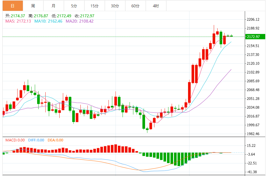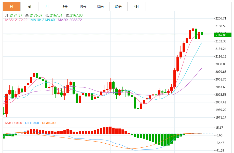 基本消息面 周四(3月14日),现货黄金短线持续走低,金价已经跌破2170美元/盎司关口。假如突破2180.00-2185.00美元/盎司区域,金价后市仍有望刷新历史高位。 相关新闻消息 现货黄金周三收盘大涨15.95美元,涨幅0.74%,报2174.27美元/盎司。金价上周五盘中一度触及2195.18美