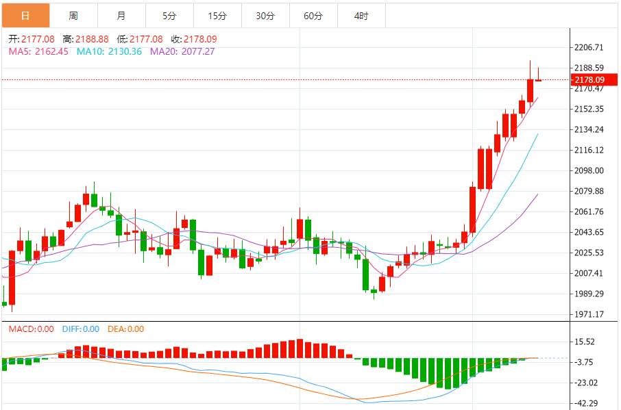 基本消息面 现货黄金上周五(3月8日)再次刷新历史高点至2195.07美元/盎司,因美国失业率上升的数据提振了对美联储可能很快开始降息的预期。上周五现货黄金收报2178.58美元/盎司,日线录得八连阳,周线涨幅约4.57%,创下自10月中旬以来的最大周线涨幅,也是连续第三周上涨。分析师认为,将金价目标设定
