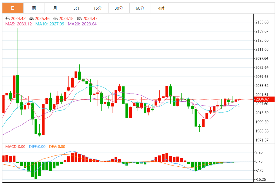 基本消息面 周四(2月29日),现货黄金窄幅震荡,目前交投于2034.78美元/盎司附近。金价周三小幅上扬,美国略微下修第四季经济增幅,给金价提供支撑,但金价涨幅受限,因交易商关注关键经济数据和美联储官员对降息时间表的评论。 RJOFutur高级市场策略师oHarkor说,“美联储