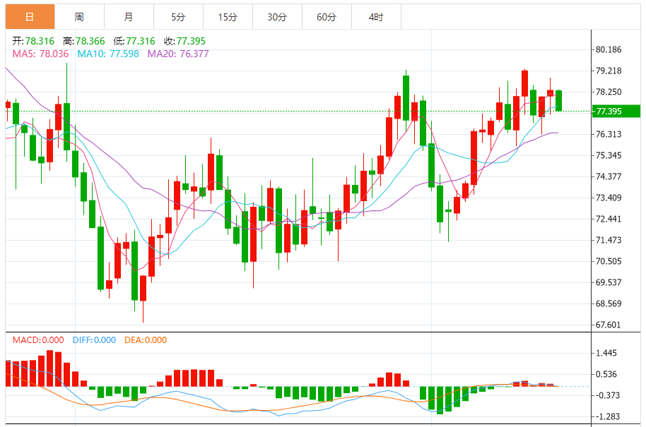 基本消息面 油价周五下跌,此前美联储一位官员表示至少应再推迟两个月降息。但需求稳健的迹象和供应担忧可能会在未来几天提振油价。截至发稿,布伦特原油期货LCOc1下跌0.94美元,跌幅1.12%%,报每桶82.73美元;美国西德克萨斯中质油(WTI)期货CLc1下跌1.01美元,跌幅1.28%,报77.6美元。