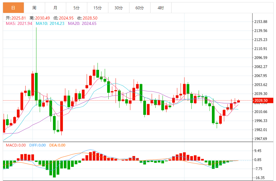 基本消息面 北京时间23日凌晨,美国黄金价格周四走低,美元走强令金价承压。周四美国劳工部报告称,美国上周初请失业金人数意外下降,表明2月份就业增长可能保持稳舰劳动力市场仍然紧张、经济表现强劲。投资者正等待进一步的经济数据,以判断美联储的利率立常截至发稿,现货黄金价格下跌0.2%,报每盎司2
