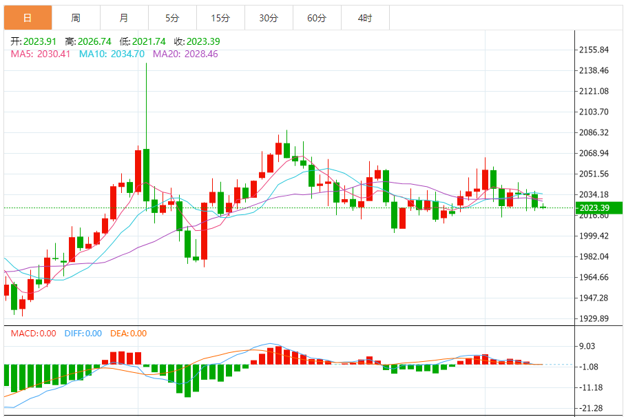 周一(2月12日),现货黄金基本持稳,目前交投在2025美元/盎司附近。上周,金价没有朝着任何一个方向做出决定性的变动。2020美元/盎司将成为黄金的首个短期技术支撑。美国1月份的通胀数据将于本周公布,这是本周黄金市场关注的焦点。上周,现货黄金收盘下跌0.74%,收报2024.49美元/盎司。 黄金市场基本