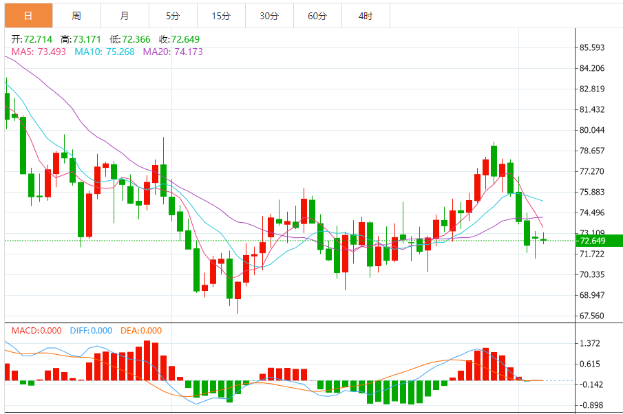 基本消息面 周二(2月6日)欧市盘中,美原油价格交投于72.66美元每桶附近,周一油价收出长下影线,在年初成交密集区域获得支撑企稳。 相关新闻消息 从上周一开始原油连续大幅回调近8美元,创下2个月来最大跌幅,上周五晚上美国远超预期的强劲就业数据让美联储降息预期降温,