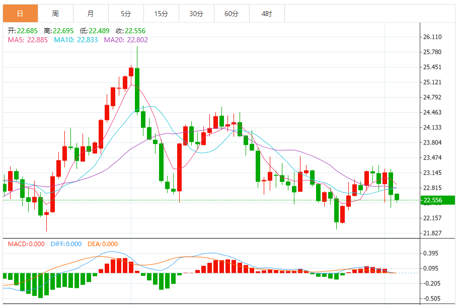基本消息面 周一(2月5日),现货白银延续日内跌势,银价目前交投在22.55美元/盎司附近。银价确认跌破重要水平22.85美元/盎司,这可能为银价进一步大跌打开空间。 相关新闻消息 受美元大涨打压,现货白银上周五收盘重挫2.1%,报22.68美元/盎司。 银价上周五收盘